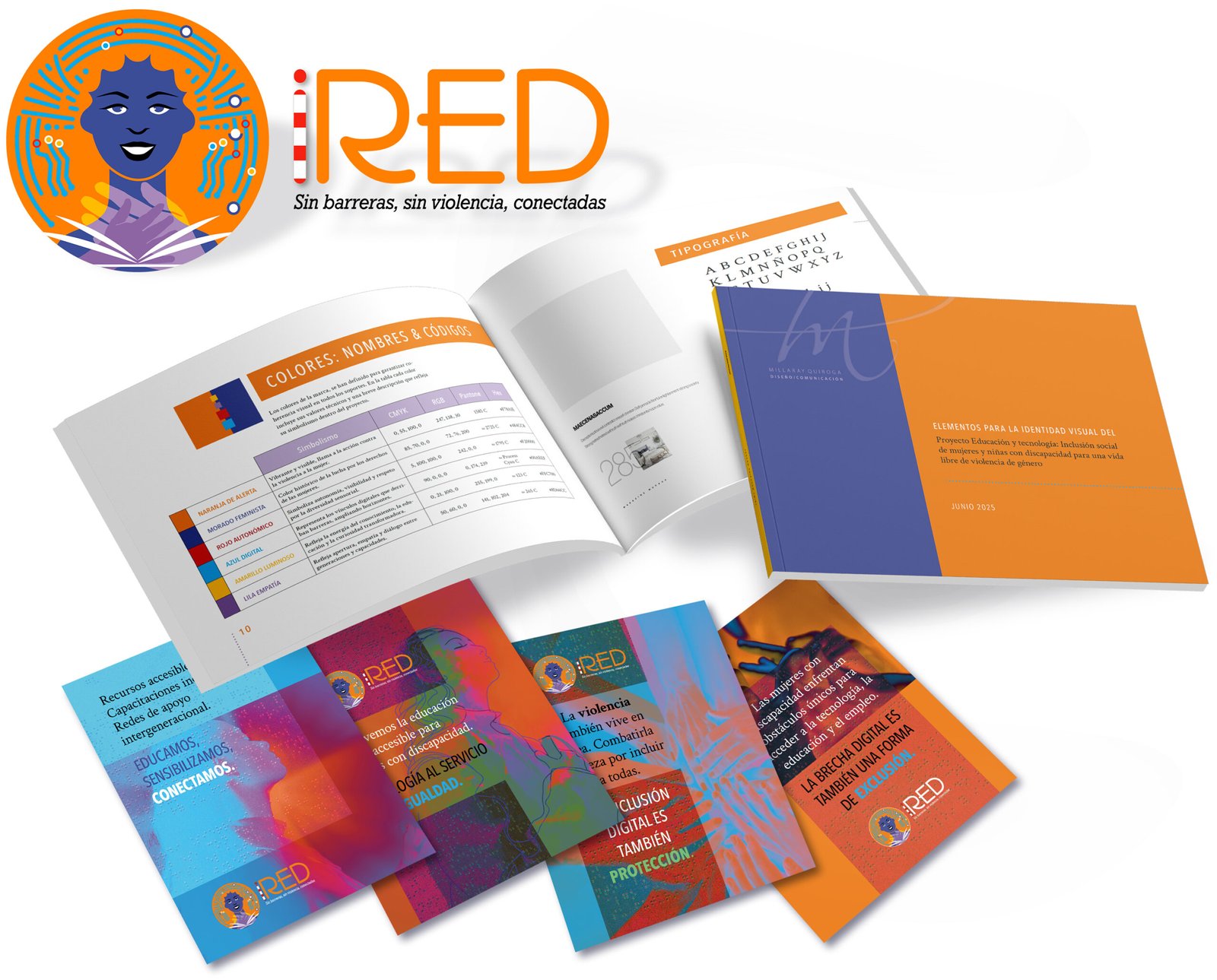 Lideramos el desarrollo del nombre estratégico iRED (conectividad, Inclusión, Internet) un lema y una identidad visual. El diseño del logo y la línea gráfica creó un sistema visual de alto contraste y legibilidad que prioriza la funcionalidad y el empoderamiento digital de mujeres y niñas con sordoceguera.