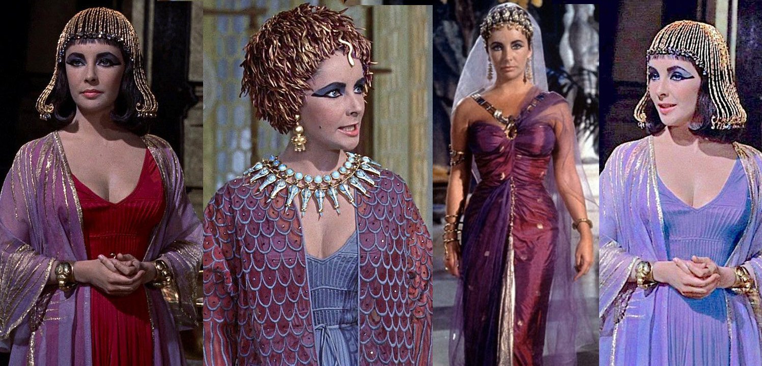 Cuatro de los 65 trajes que utilizó Elizabeth Taylor para la película Cleopatra.