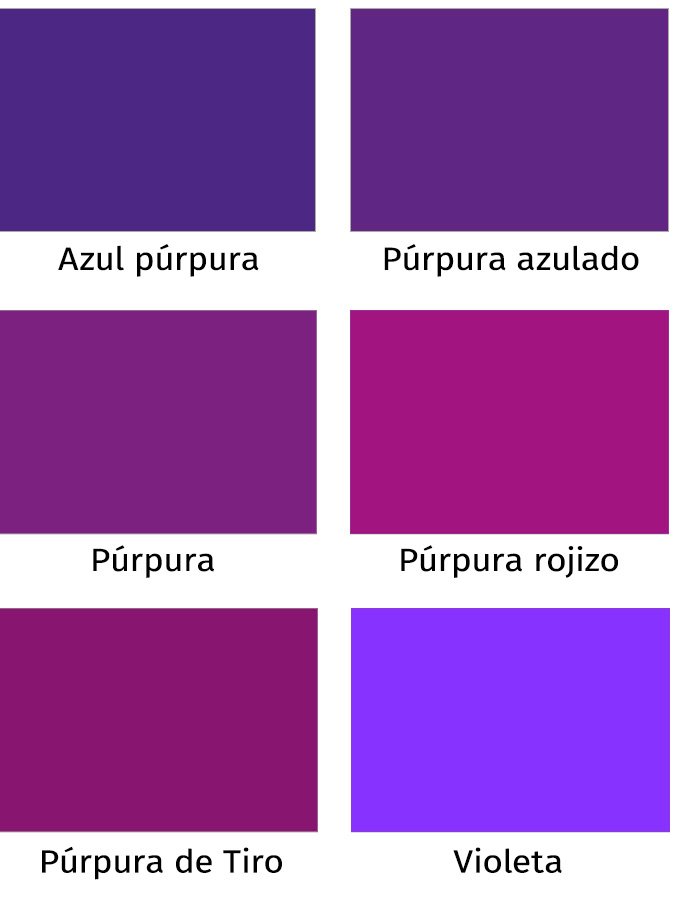Algunos tonos de púrpura/morado.