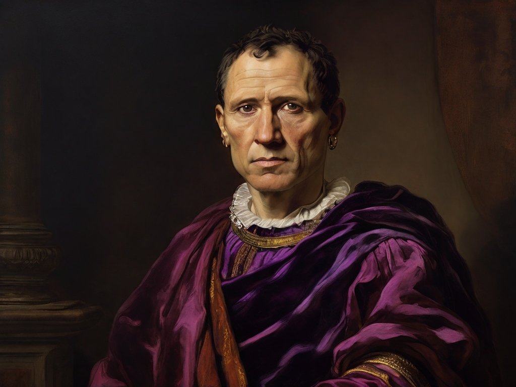 Al principio, solo los bordes de las togas imperiales eran de color púrpura. Julio César fue el primero en darse el gran lujo de la toga purpurea, es decir completamente morada.