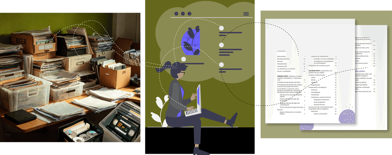 La institución enfrentaba el reto de compilar 35 años de historia (dispersa en cajas de archivos, videos y documentos) en un solo documento coherente. Existía una brecha crítica en la recopilación, sistematización y narrativa histórica, lo que amenazaba el legado institucional.