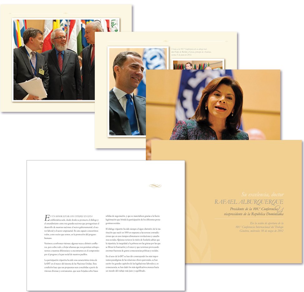 CLIENT: ILO, Geneva | SCOPE: Comprehensive editorial design for the historic 101st International Labour Conference. Note: High-level proceedings featuring global heads of state and international dignitaries.